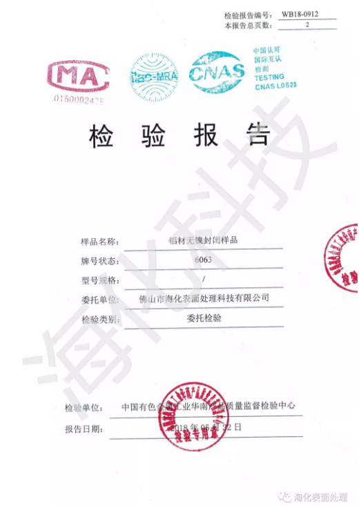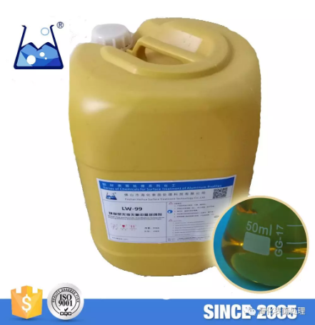 LW-99 is a kind of high concentration colorless or light amber liquid which has excellent sealing effect for aluminum oxidation film. It does not contain heavy metals, which not only will solve the problems caused by heavy metal in waste water treatment process, but also can avoid aluminum surface greenish phenomenon which caused by the oxide film absorbing nickle salt during the sealing period. LW-99 is applicable to the transparent film, polishing, electrolytic coloring film sealing and it has the advantages of simple operation, environmental protection, water-saving, free of treatment to fluoride and nickel irons in waste water processing which can be cost-saving.